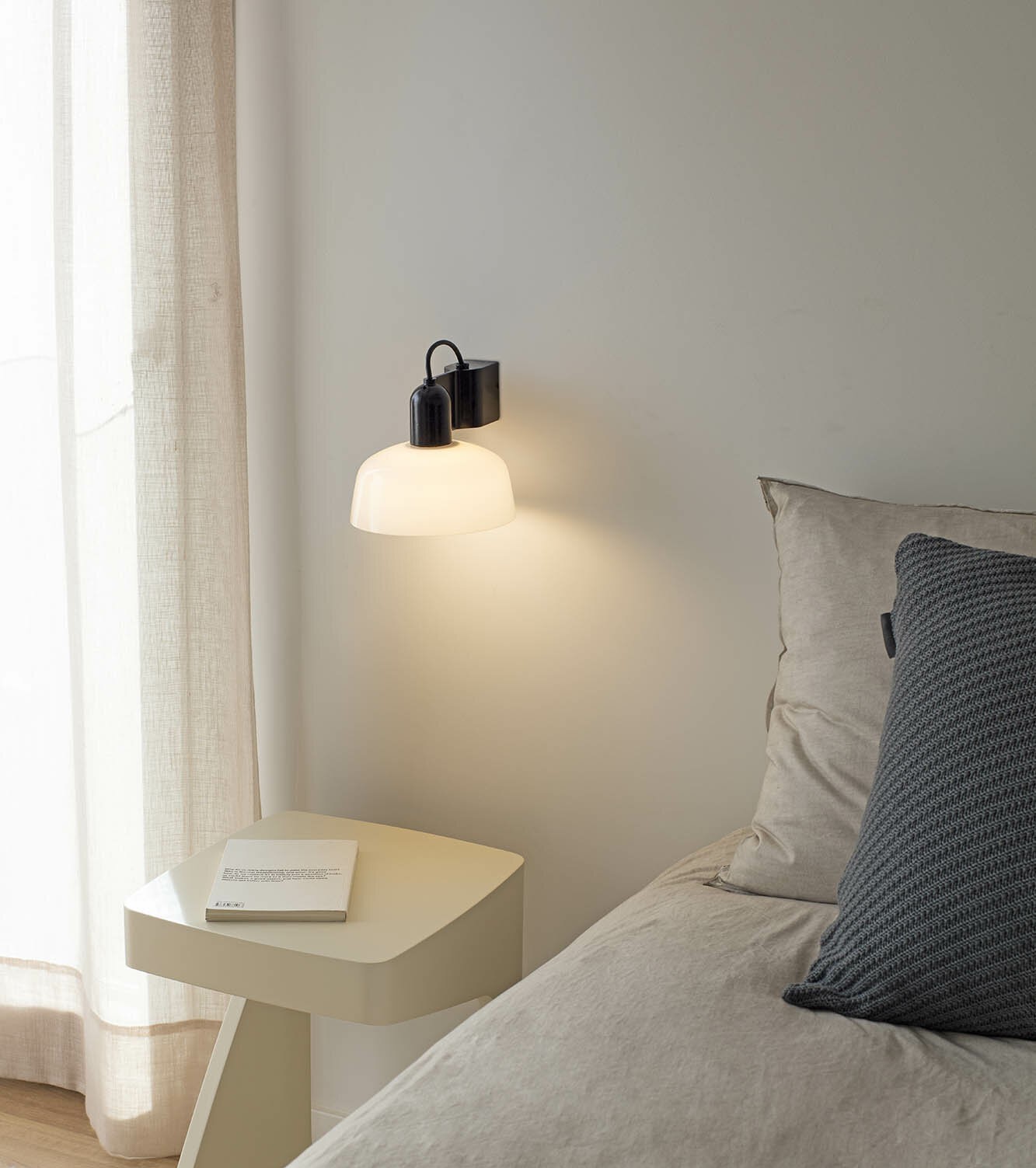 Reading light with Glass shade. Available in White or Black. E27 LED Lamp